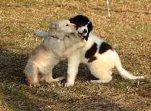 | Das Zusammensein mit anderen Welpen ist genau so wichtig wie der Kontakt mit erwachsenen Hunden, die über ein ausgewogenes Sozialverhalten verfügen sollten. Das Bedürfnis nach Spiel mit Artgenossen wird befriedigt bei gleichzeitigem Lernen des Sozialverhaltens. | |||||||||||||||||||||||||||||||||||||||||||||||||||||||||||||||||||